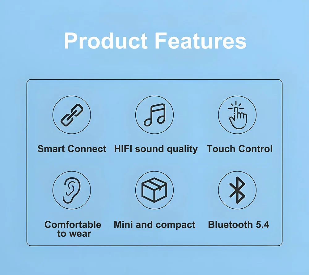 Smart Connect HIFl sound quality Touch Control Comfortableto wear Mini and compact Bluetooth 5.4 Airpods