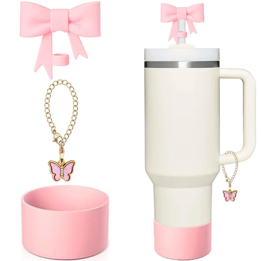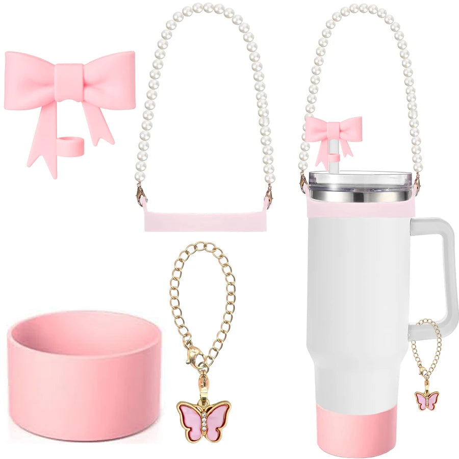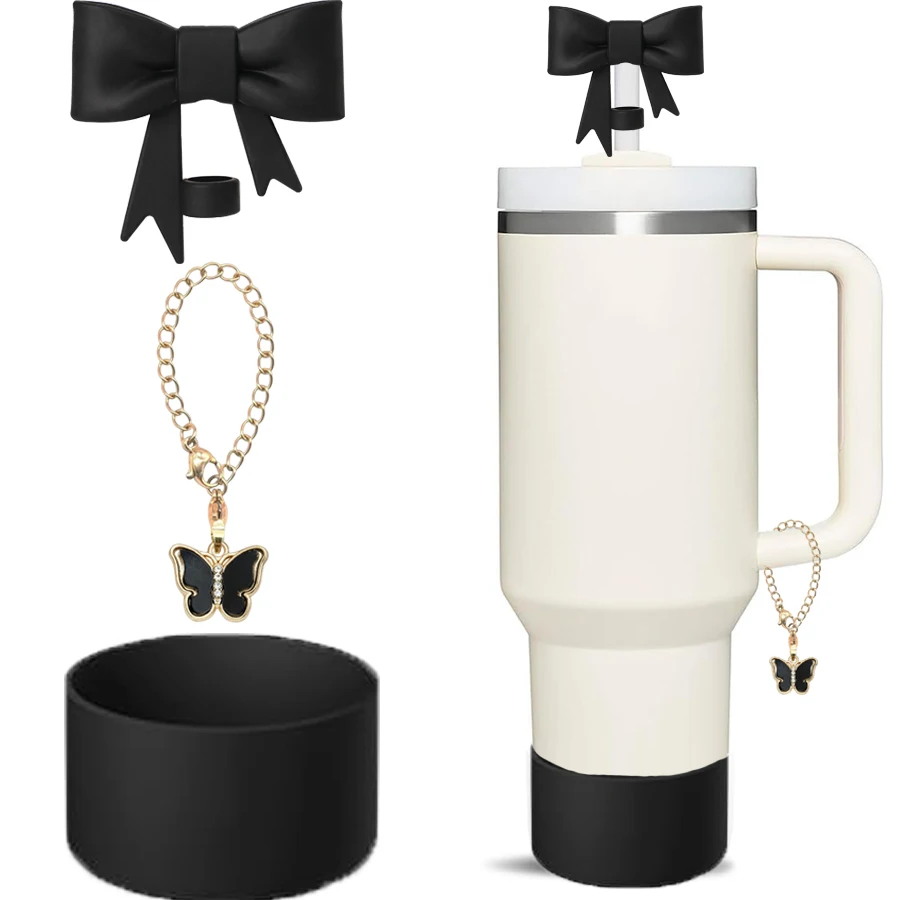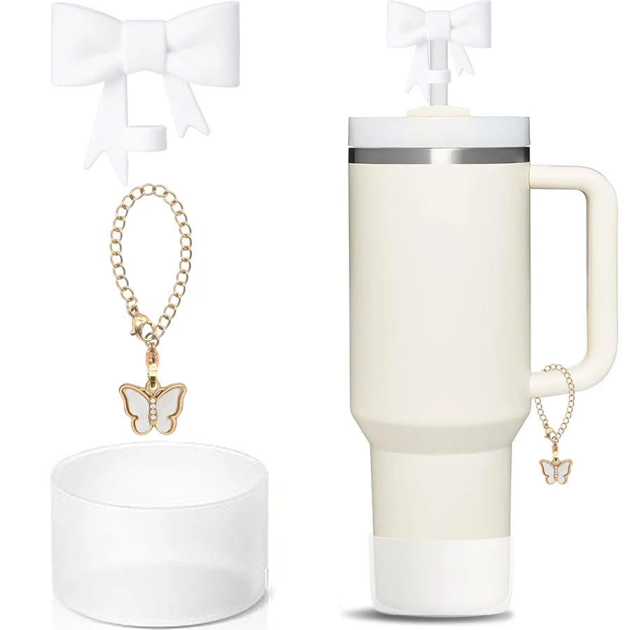 3 uds accesorios para taza Stanley 1 Uds tapa de cubierta de pajita con lazo de 10mm 1 Uds botellera de agua 1 Uds cadena con dije para vaso con asa