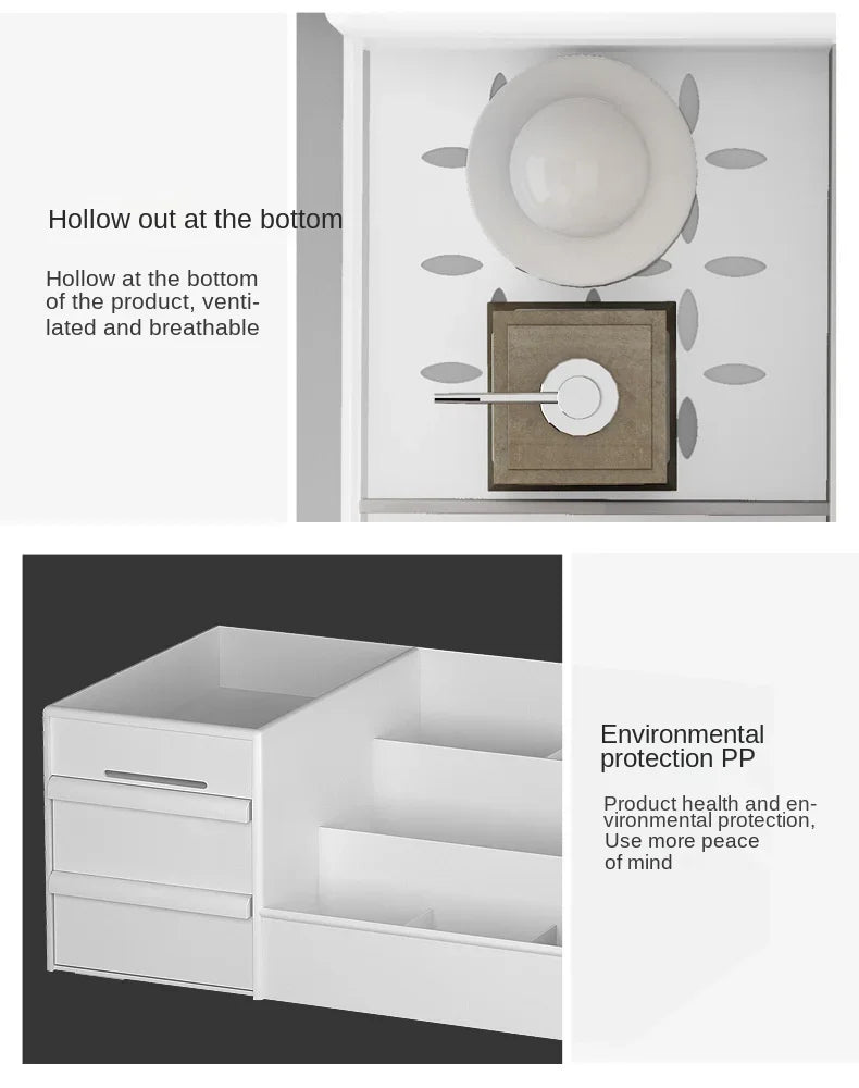 • Versatile Makeup Storage :This white drawer makeup storage box is perfect for organizing your cosmetics and skin care products. It's ideal for dormitory use or any small space.