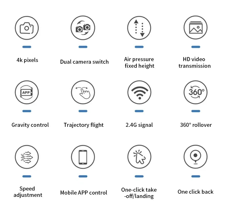 • Conexión 5G WIFI Fpv:Experimente un control perfecto y una transmisión en tiempo real con la conexión 5G WIFI Fpv, lo que garantiza un vuelo fluido y el intercambio de datos en tiempo real.