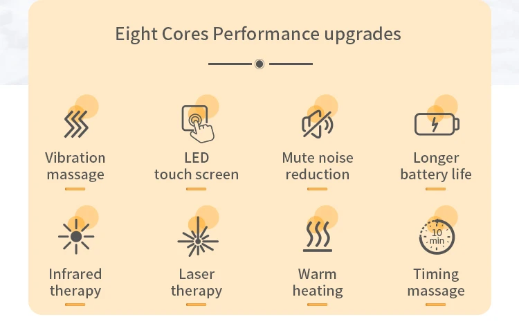 This roller massager has 3 vibration modes, from Low and High to automatic switching. Three heating modes, from a low setting of 105°F, medium of 122°F, up to a high level of heating of up to 140°F, and all with the added benefit of infrared lighting and switchable laser.